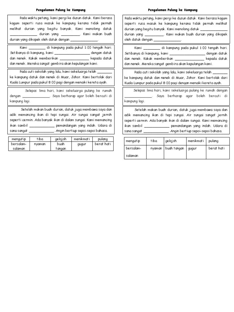 Karangan Pengalaman Bercuti Di Kampung - Karangan Pengalaman Sumber Pengajaran. Pada cuti sekolah yang lalu, kami sekeluarga bercuti di kampung. Tulis karangan tentang pengalaman percutian kamu itu.